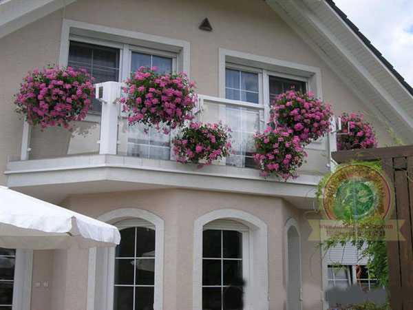 Ví dụ: chậu hoa treo như dừa cạn, dạ yến thảo, cúc nữ hoàng,…đều cần ánh sáng 100% ( nắng hướng Đông) hay 50-60 % đối với các hướng nắng khác, khi hoa treo có đủ ánh sáng mới đảm bảo ra hoa thường xuyên lâu dài, nên để chậu treo nơi sân thượng, mé hiên có nhiều nắng chiếu.
